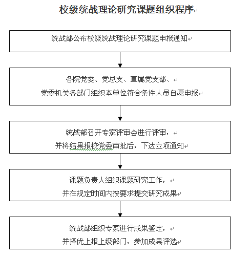 2、每年3月底公布校级统战理论研究课题申报通知,9月结题,并及时向上级部门申报成果。