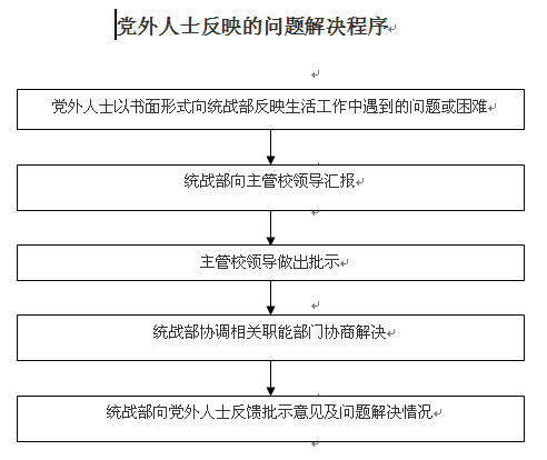 积极协助党外人士解决生活和工作中的问题或困难。及时向主管校领导汇报,并与相关职能部门协商解决,对于暂时不能解决的问题,耐心向党外人士做出解释。