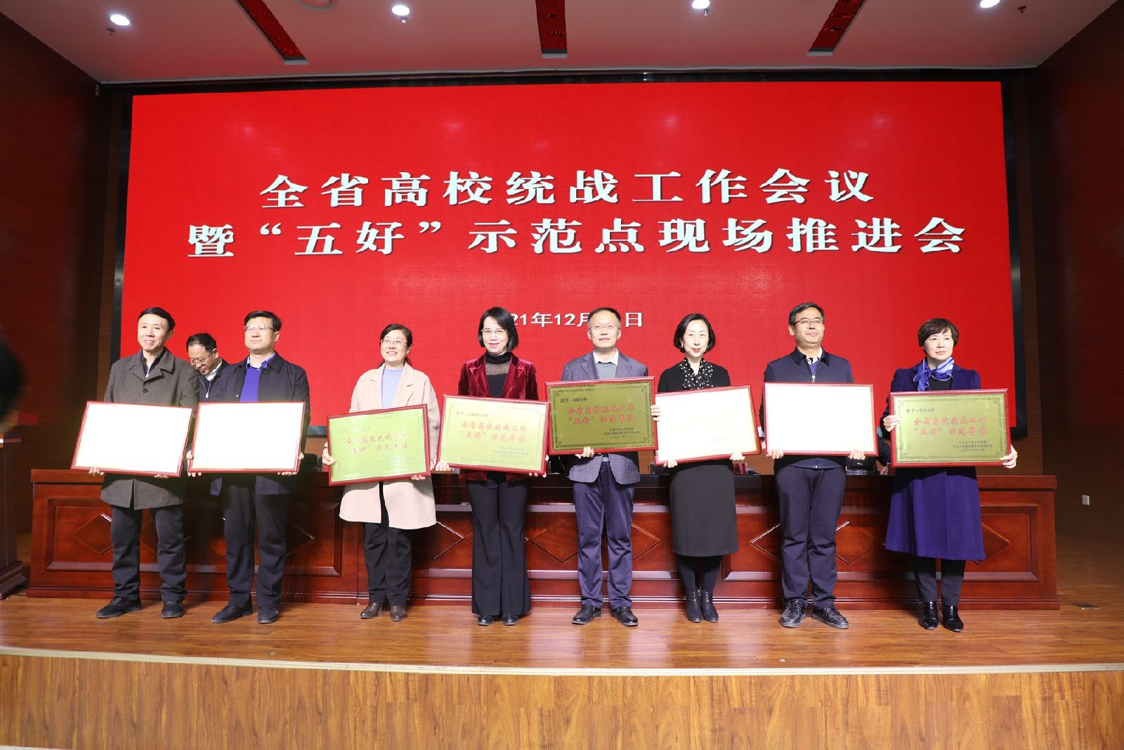 会议对第一批高校统战工作“五好”示范单位进行授牌。我校荣获“全省高校统战工作‘五好’示范单位”荣誉称号。