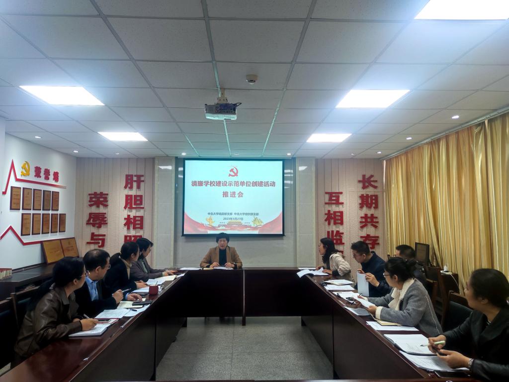 为认真贯彻落实《关于开展清廉学校建设示范单位创建活动的通知》的文件精神,切实抓好我校清廉学校示范单位创建工作,3月27日,统战部和组织部在德怀楼6层会议室召开了清廉学校建设示范单位创建推进会,会议由夏瑞丽部长主持,两部门全体成员参加。