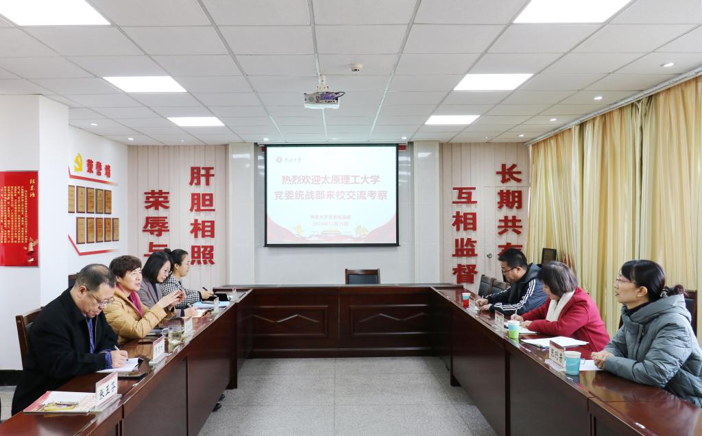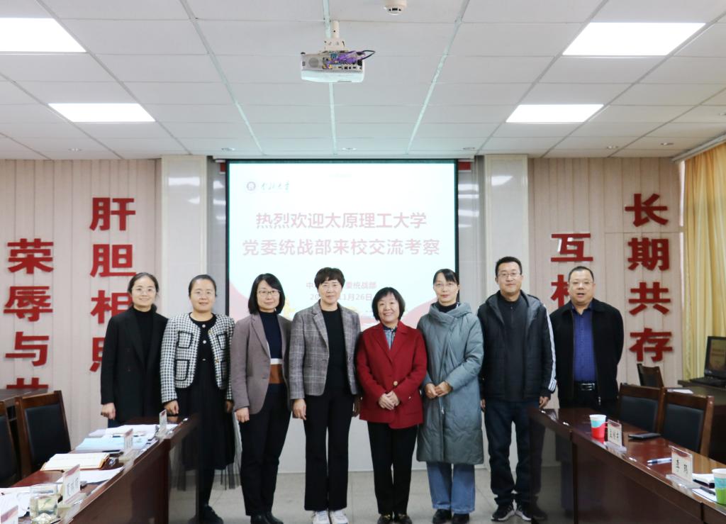 11月26日,太原理工大学党委常委、统战部部长李玮一行三人来我校调研交流。校党委常委、统战部部长夏瑞丽出席并主持调研座谈会,双方学校统战部全体工作人员参加座谈会。