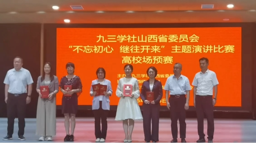 2025年6月13日上午,由九三学社山西省委员会主办的“不忘初心 继往开来”主题演讲比赛在山西师范大学举行。九三学社山西省委员会专职副主委陈忠辉等领导出席活动,九三学社中北大学委员会社员葛双超老师参加本次比赛。